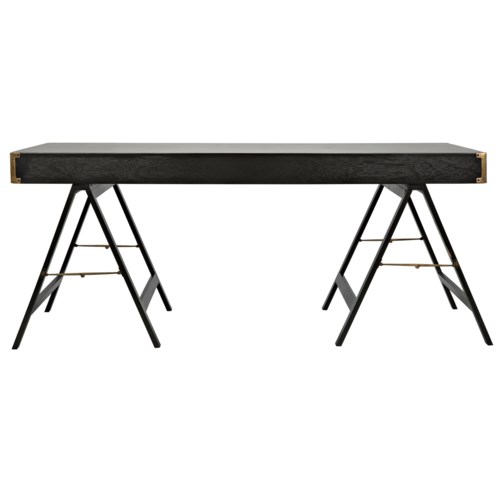 Horn Tone Neutral Finish X Base Campaign Desk With Brass Hardware