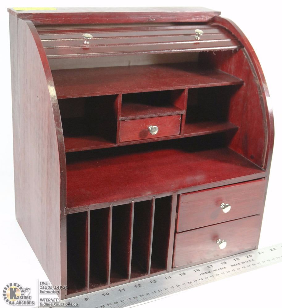 Cherry Wood Roll Top Desk Organizer