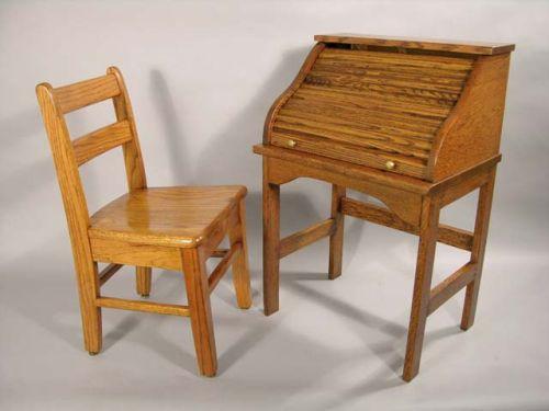 Childs Oak Roll Top Desk With Chair