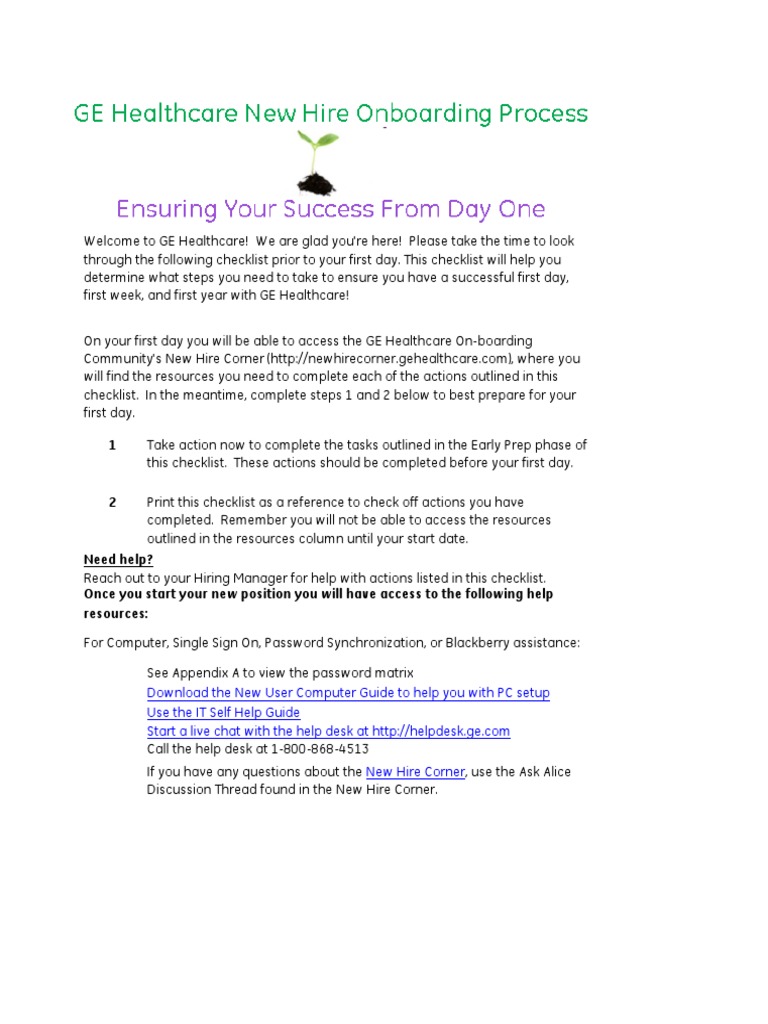 Gehc Offer On Boarding Checklist For New Hires 20111019