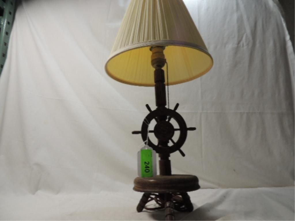 Vintage Wooden Nautical Ship Wheel Desk Lamp