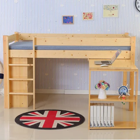 Kid Bunk Beds Kids Double Simple Design Solid Wood Deck Desk Room